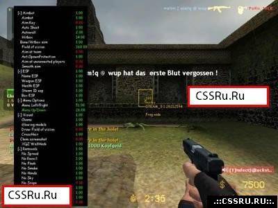 Если у вас тупой комп, и не может поддерживать сразу много читов для ксс, то этот чит для вас - потомучто в этом чите очень много функция, а вот одни и зних: SpeedHack - включаеться на Е Aim - все пули в голову ит.д Сначало запускаете чит, а потом игру и заходите на сервер)