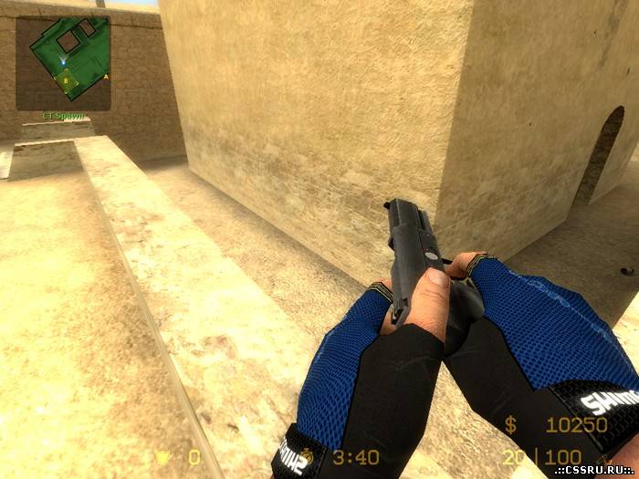 Перчатки для Counter Strike Source черно-синей расцветки. В архиве входит модель перчаток: 1 сторона просто черная, другая (как видно на скриншоте) синяя. Модель перчаток для CSS очень качественная, и просто радует глаз)