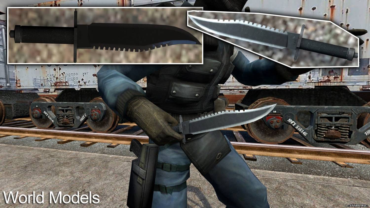 нож из игры модер варфаре 2 из call of duty. Немного переделана анимация , удар ножа изменен , так же звуки резьбы и звуки удара ножа тоже изменены. Этот Knife сделан без багов специально для сайта cssru.ru