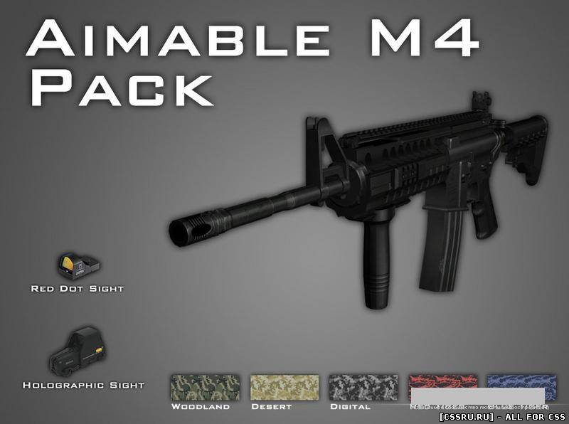 Классная модель оружия m4a1 для css. Модель сделана очень хорошо, также присутствует несколько модификаций, а именно: вы можете выбирать лазерный или оптический прицел. Фантастический вид, потрясающая стрельба, всё это ждёт вас скачивайте и радуйтесь.