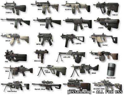 В данном разделе вы сможете сказать разные сборки оружий для css , m4a1 , MP5 и многие другие модели оружия для cs source